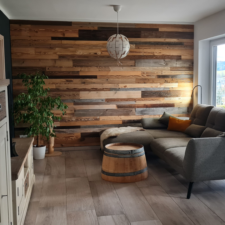 Wandverkleidung mit Altholz-Paneelen